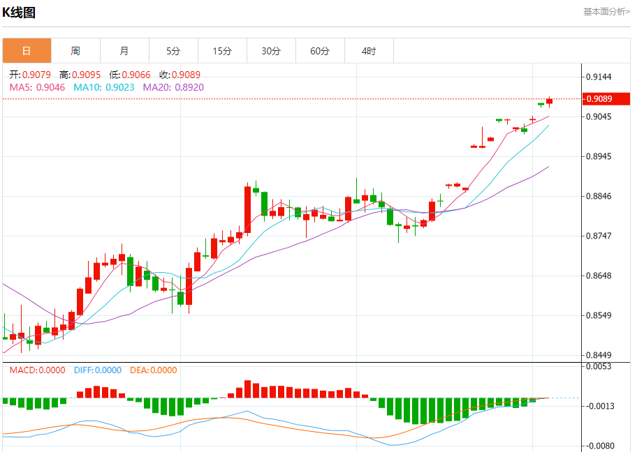 支撑位:0.9065 0.9050 0.9035