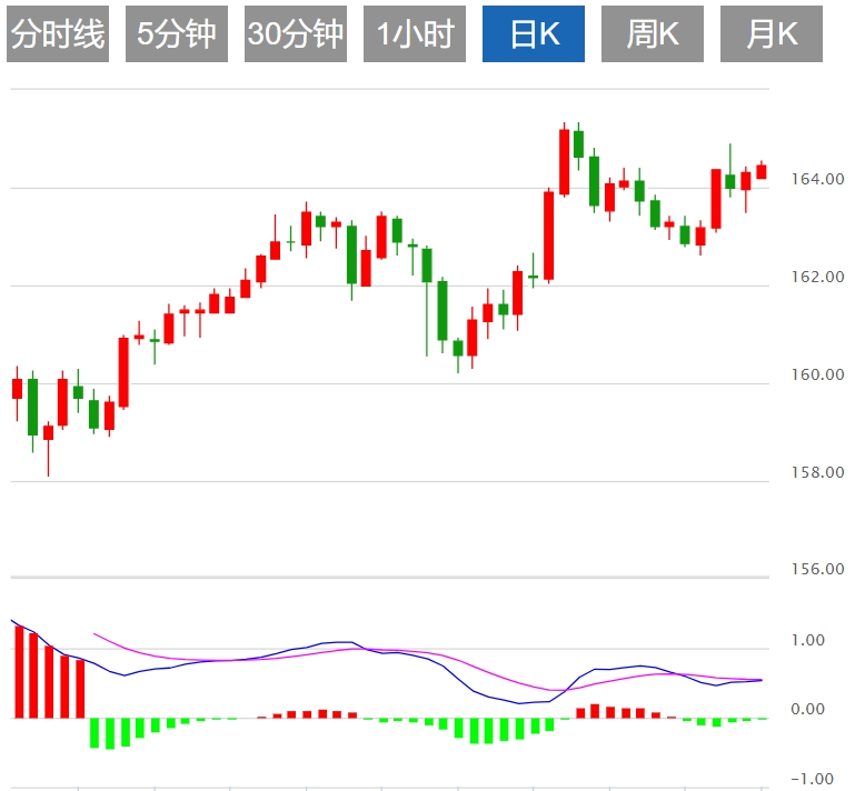 欧元兑日元继续走上看跌轨道,在164.80阻力线下方出现负值收盘,形成了一个坚实的障碍,阻止人们试图进入图上所示的破碎的看涨通道线。注意到164.40附近的临时横向波动。