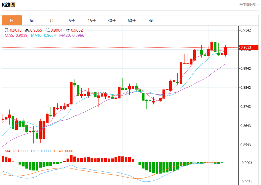 今日周一,澳元兑美元报0.6590,涨幅0.17%;美元兑加元报1.3586,跌幅0.03%;美元兑瑞郎报0.9054,涨幅0.34%。