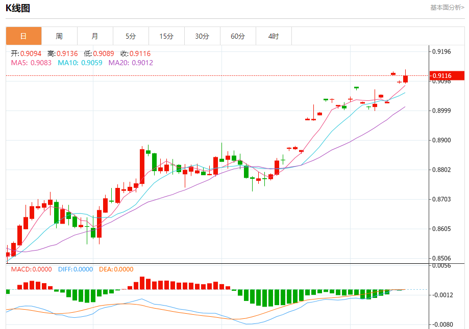 支撑位:0.9090 0.9075 0.9055