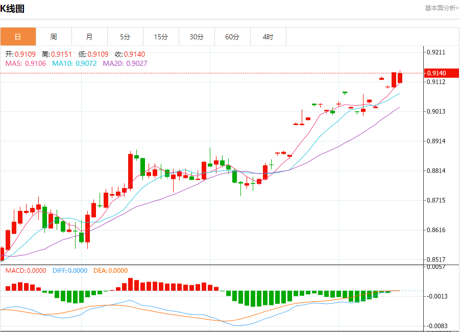 支撑位:0.9120 0.9105 0.9090