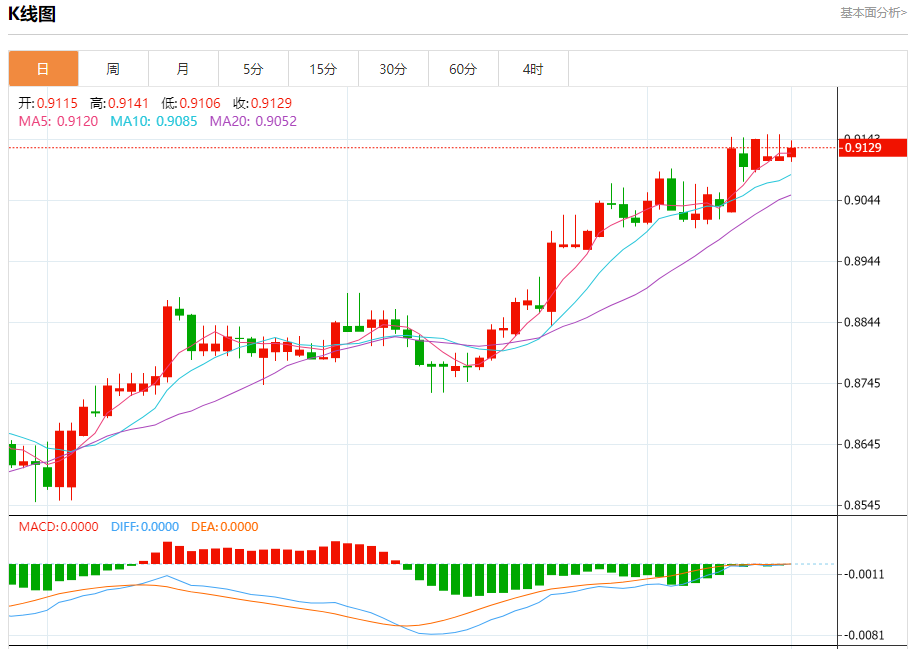 支撑位:0.9110 0.9100 0.9090