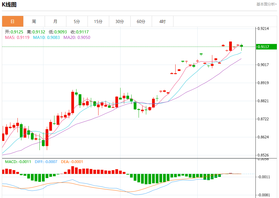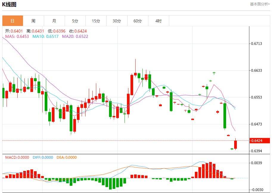 今日周三,澳元兑美元报0.6425,涨幅0.36%;美元兑加元报1.3810,跌幅0.14%;美元兑瑞郎报0.9118,跌幅0.13%。