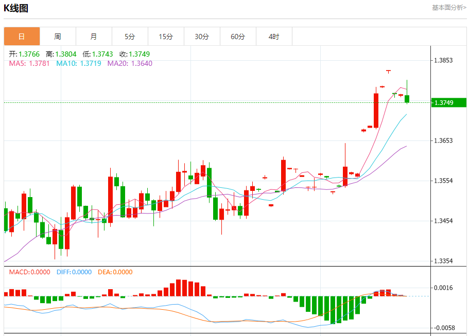 今日周五,澳元兑美元报0.6425,涨幅0.06%;美元兑加元报1.3750,跌幅0.13%;美元兑瑞郎报0.9077,跌幅0.53%。