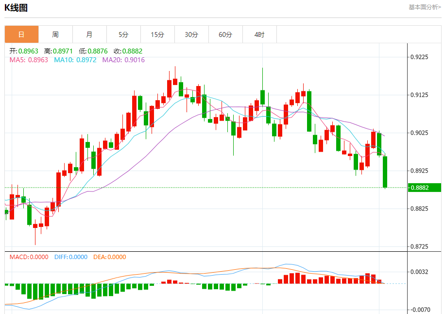 今日周二,澳元兑美元报0.6242,涨幅0.28%;美元兑加元报1.4414,跌幅0.47%;美元兑瑞郎报0.8884,跌幅0.93%。