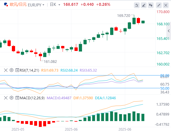 由于中东紧张局势缓解,风险偏好改善,对风险敏感的欧元/日元交叉盘可能会上涨。周二,美国总统唐纳德·特朗普宣布伊朗和以色列之间已经停火,这为结束为期12天的冲突带来了希望。