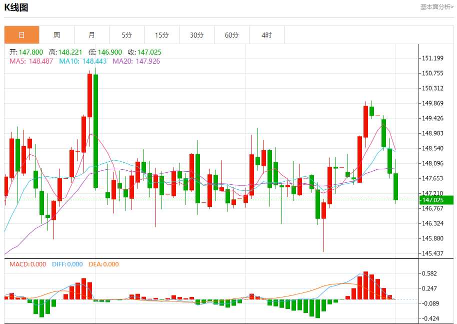 今日周三,欧元兑美元报1.1738,涨幅0.04%;英镑兑美元报1.3482,涨幅0.28%;美元兑日元报147.030,跌幅0.53%。