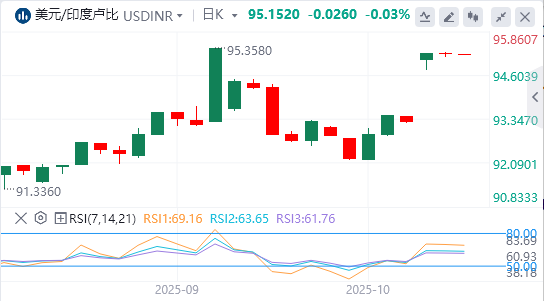 周三开盘交易中,印度卢比兑美元大幅上涨至接近88.10。美元/印度卢比在突破在88.75至89.10区间形成的长达三周的盘整后面临巨大的抛售压力。
