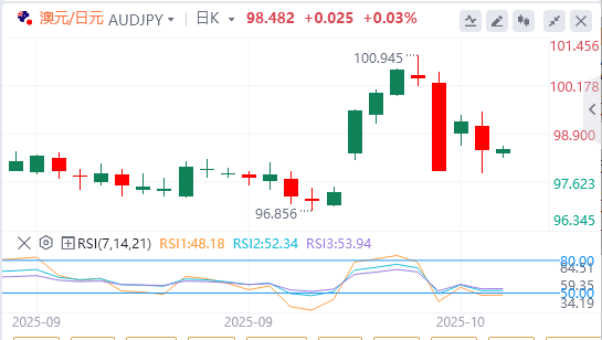 从好的方面来看,该交叉盘的第一个上行障碍出现在99.50,即10月14日的高点。关键阻力位位于100.00心理水平。持续高于上述水平的交易可能会反弹至布林带上边界100.35。
