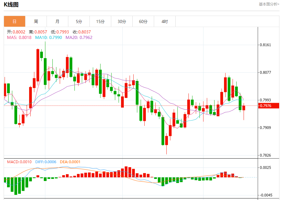 阻力位:0.8033 0.8018 0.7993
