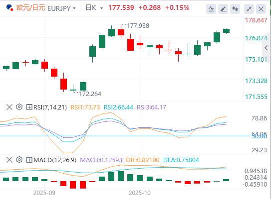 下行方面,欧元/日元的初步支撑位位于10月21日的低点175.35。任何低于该水平的后续抛售都可能导致跌至173.70,即9月22日的低点。值得关注的额外下行过滤器是172.50,这是布林带的下限。