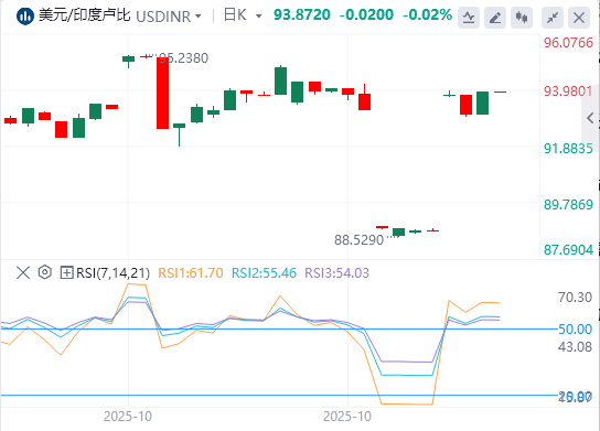 印度卢比兑美元走弱,尽管后者兑主要货币交易谨慎。截至撰写本文时,追踪美元兑六种主要货币价值的美元指数(DXY)持平,略高于10日低点99.30。