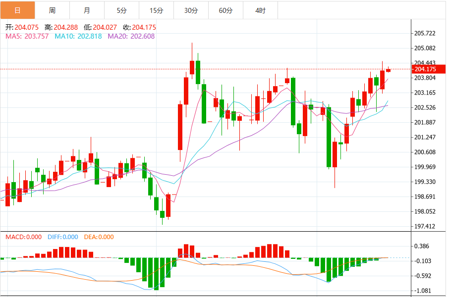 英镑/日元的技术图形显示,该货币对呈中性偏向上行,关键阻力位在204.50。 相对强弱指数(RSI)呈看涨趋势,尽管显示买方的动能有所减弱。
