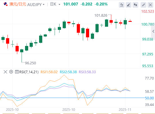 澳元/日元在周一下跌0.17%后回升,交叉对测试20日简单移动平均线(SMA)100.45后上涨0.39%。