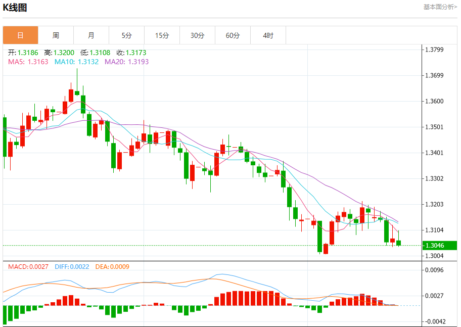 阻力位:1.3120 1.3105 1.3080
