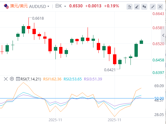 澳元在首个月度CPI推振了澳大利亚储备银行(RBA)政策前景的谨慎情绪后有所回升。预计RBA将在12月将官方现金利率(OCR)维持在3.6%,因为通胀率仍高于RBA的2–3%目标区间。澳储银行官员指出,失业率略有上升,但就业市场依然健康,预计将继续保持良好状态。