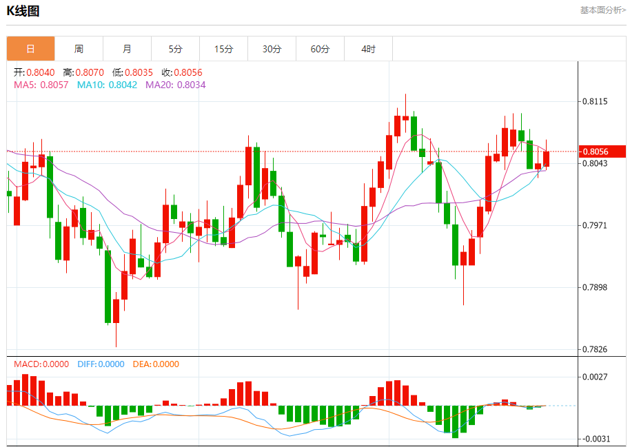 支撑位:0.8035 0.8020 0.8005