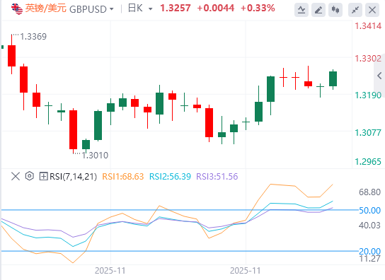 英镑/美元周三跳升至接近1.3250。英镑兑美元货币对维持在20日指数移动平均线(EMA)1.3192上方,显示短期内正向趋势。