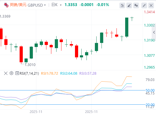 英镑接近周三发布的月度高点1.3350。该货币对维持在上升的20天指数移动平均线(EMA)1.3215上方,保持短期正向偏好。20日EMA近期有所上升,跌幅较浅。