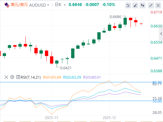 澳元/美元当天在中国零售销售和工业生产数据公布前呈积极表现。随着美联储明年可能降息,美元走软,货币对走势有所回升。