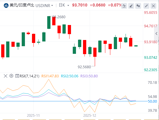 趋势状况依然坚挺,尽管随着RSI从70多点回调至59.23,动能有所放缓。随着美元/印度卢比守住移动平均基准,回调将保持抑制,支撑区位于20-EMA集群89.9556–89.8364。日收盘跌破该区区将使盘整倾向倾向,而若买盘价维持在该区以上,则有进一步延伸的空间。