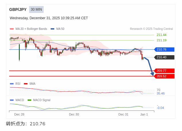 基本面情况:英镑方面,英国央行行长贝利在新闻发布会上表示,未来利率仍可能继续沿着“渐进式下行路径”调整,但每一次降息都会使政策空间变得更加有限,暗示央行在后续决策中将更加谨慎。日元方面,日本央行近期核心动态聚焦于12月加息落地与会议纪要强化紧缩预期,当前处于30年来最高利率区间(0.75%),政策正常化稳步推进,同时兼顾经济复苏韧性与汇率稳定,市场对后续加息节奏与终端利率的博弈升温。