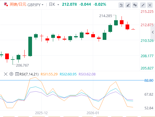 相反,如果交叉对突破1月15日高点213.31,下一个关键阻力将是年度高点214.29。