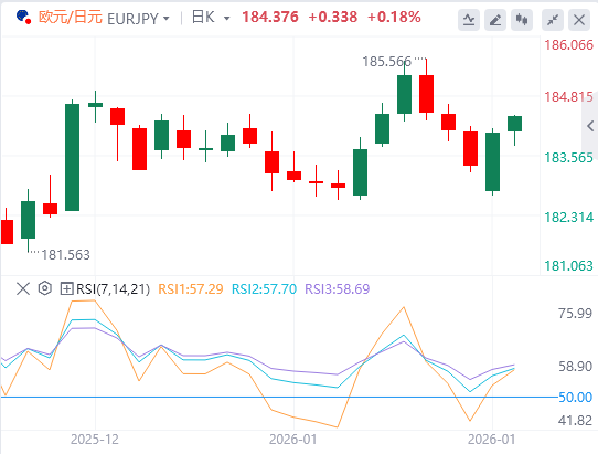 日线图中,欧元/日元100-EMA179.28,平均线持续上升,支撑更广泛的上涨趋势。RSI位于55.75,已从55.62小幅上升,表明稳定的多头动能且无超买条件。现货仍位于中布林带183.85上方,而上轨185.00则封顶了直接的上方。