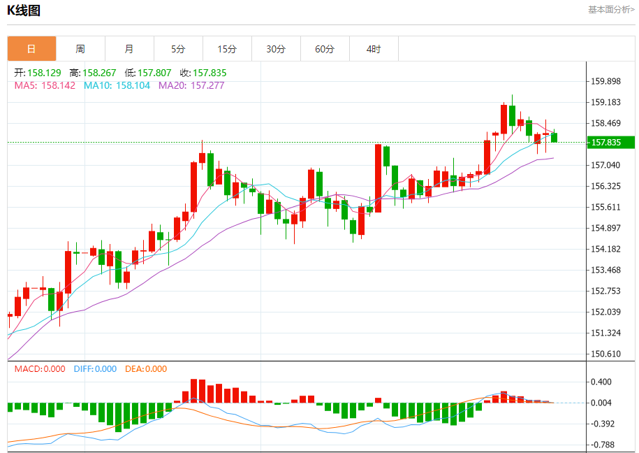 今日周三,欧元兑美元报1.1728,涨幅0.04%;英镑兑美元报1.3420,跌幅0.10%;美元兑日元报157.872,跌幅0.18%。
