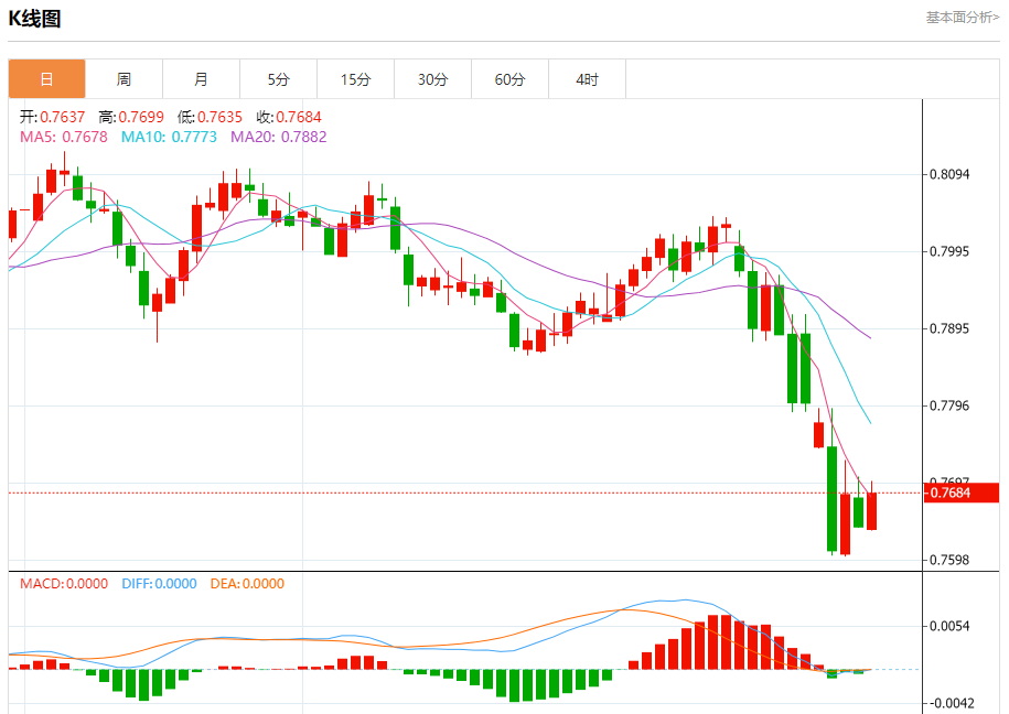 今日周五,澳元兑美元报0.7007,跌幅0.59%;美元兑加元报1.3524,涨幅0.25%;美元兑瑞郎报0.7683,涨幅0.54%。