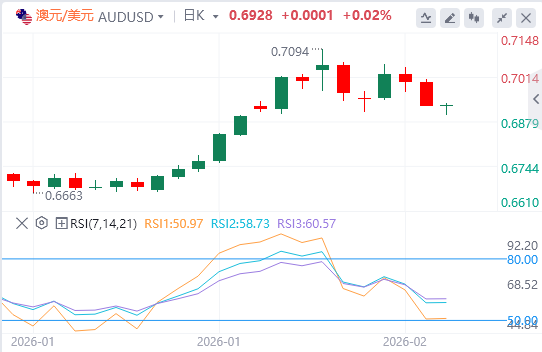 澳元/美元货币对可能在九日指数移动平均线(EMA)0.6946处试探直接障碍。若在上升通道内反弹,将增强多头偏向,目标0.7094,为2023年2月以来最高水平,该水平于1月29日记录。若突破该水平,将支持货币对测试上升通道上边界,约在0.7270附近。下行方面,主要支撑位于50日均线0.6771。