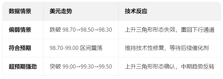 1月9日晚间,23:00美国1月密歇根大学消费者信心指数初值前值52.9,预测值53.5,预计将影响美元货币走势。 美元指数(DXY):99.00成生死线,非农夜定中期方向 1.技术面深度解析 日线级别:处于"下跌后技术性修复"走势,99.00成关键分水岭;日线RI升至55.51(未超买仍有修复空间),ACD金叉转阳但