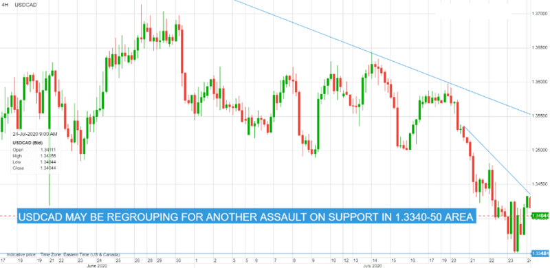 (美元/加元4小时走势图,来源:盛宝银行)