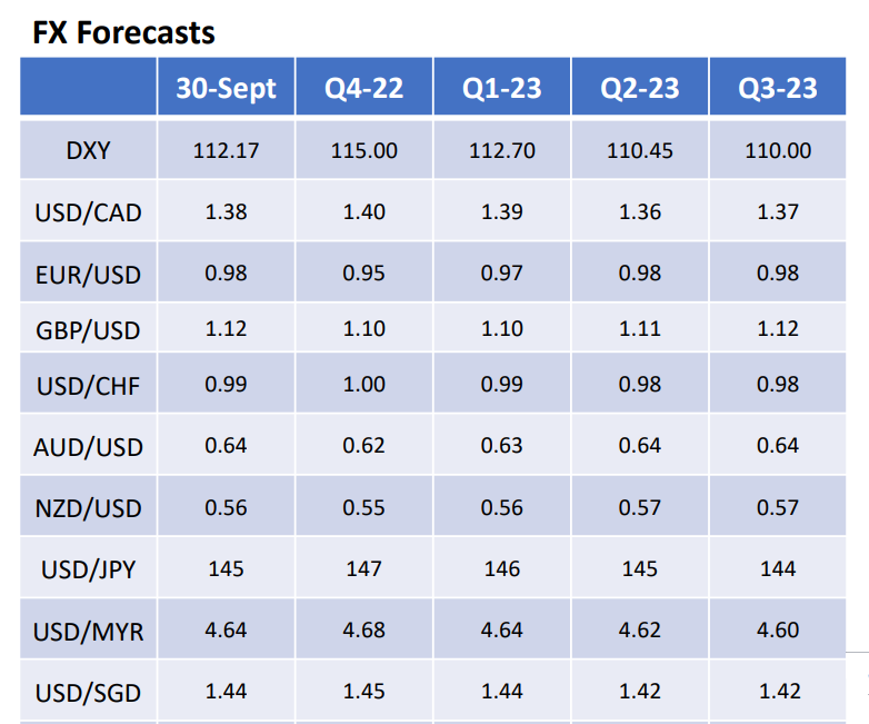 日元:美联储和日本央行的政策分歧将继续令日元承压,但如果美联储在2023年下半年开始降息,避险买盘和即将收窄的收益率溢价将开始消除这一压力。