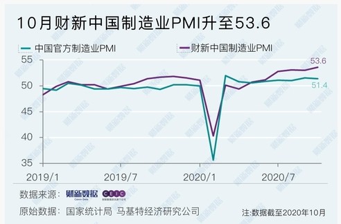 随着国内外经济持续回暖,11月2日公布的10月财新中国制造业采购经理人指数(PMI)录得53.6,较9月回升0.6个百分点,为2011年2月以来最高值,显示制造业景气状况改善明显。