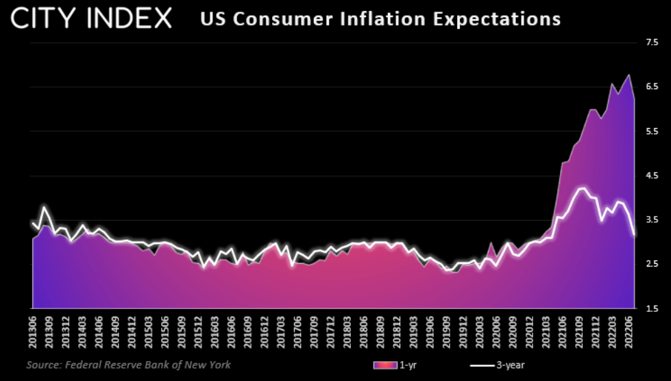美联储密切关注消费者通胀预期,因为如果它们保持高位,实际通胀水平也会如此。美联储最不希望看到的是价格上涨“根深蒂固”。因此,有迹象表明通胀预期走低,这对美联储来说可能是乐曲。