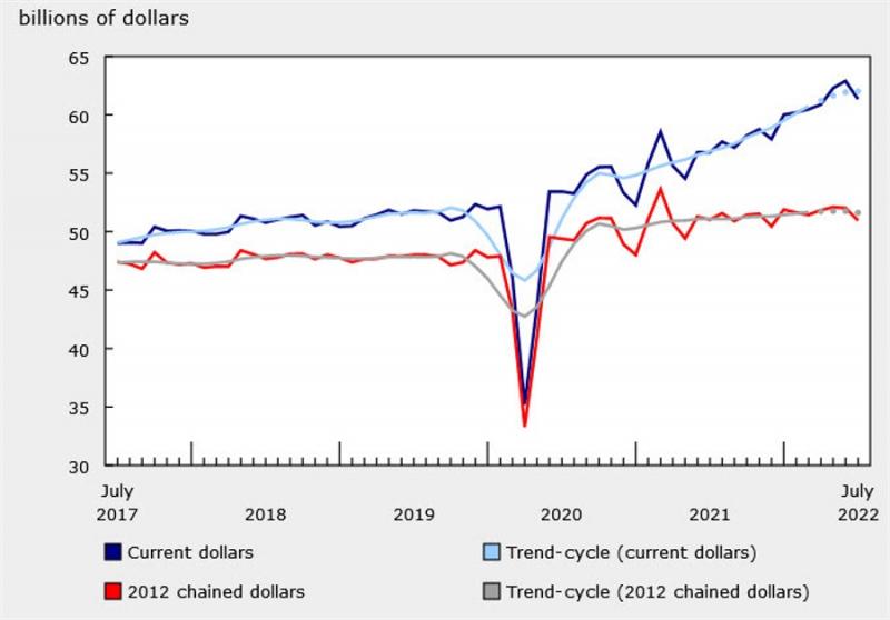 7月份零售销售下降2.5%至613亿加元,为七个月来首次下降。11个细分行业中有9个行业的销售额下降,占零售贸易的94.5%。加油站、服装和服装配件商店的销售额下降是导致零售销售萎缩的原因。