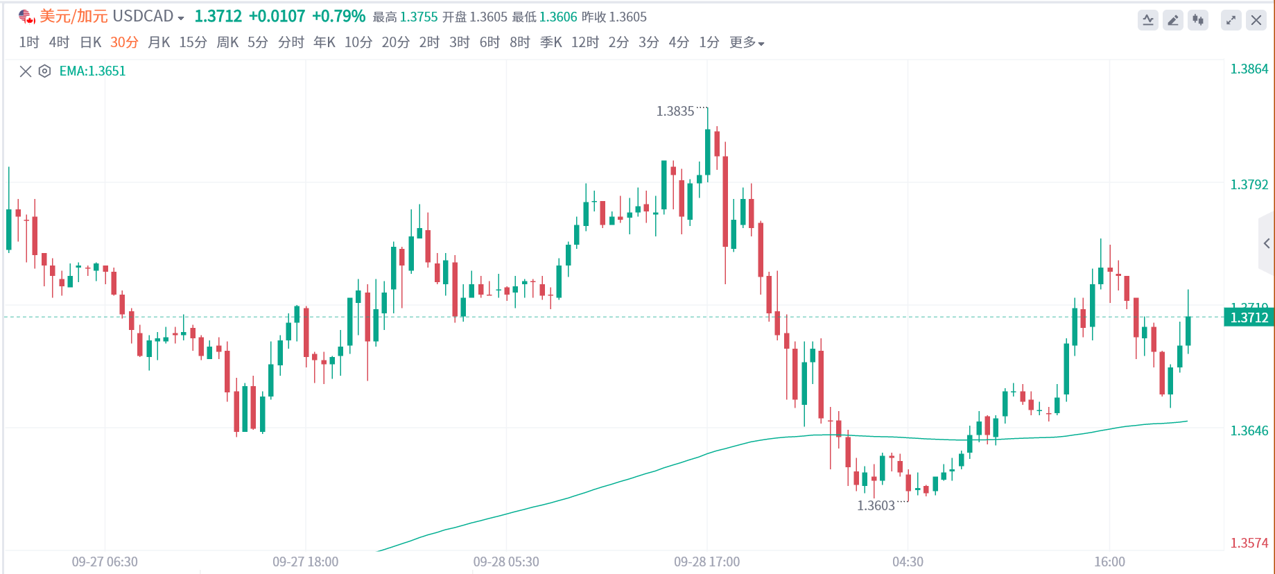 美元/加元走高 现报价1.37112.