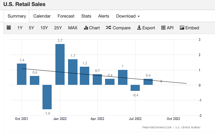 正是由于通胀数据没有达到预期,美国股市才得以从上周四疲弱的CPI数据中反弹。 对于那些关注数据和关键叙述的人来说,这显然是一种交易。 因此,美国零售销售数据之外的交易将助长加息放缓的说法。 以下是对美国零售额的预期,预计将从之前的8.2%下降到6.9%。 总的趋势是较低的,而且美元最近一直在冷嘲冷讽地交易,所以没有理由预期这种情况会在短期内改变。