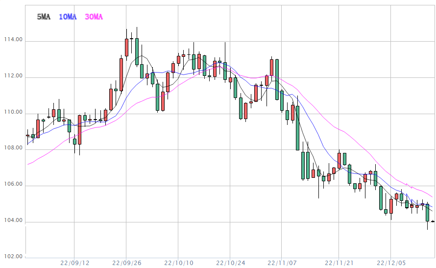截至目前,美元指数交投于104.04附近,美元指数周二大跌,此前数据显示,11月美国核心消费物价升幅低于预期,加强了美联储将放缓加息步伐的预期。瑞穗银行分析师Robert Yawger说:“没有人真的认为这个数字会低于预期,这可能是一个有利于需求的事件,使市场出现买盘。”