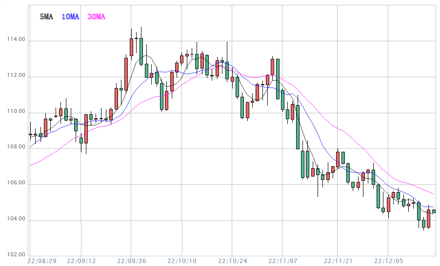 截至目前,美元指数交投于104.44附近,美元指数周四盘中一度收窄涨幅,此前的数据显示,美国11月零售销售下降幅度超过预期,而劳动力市场仍然紧张,上周初请失业金人数下降。技术面来看,日线级别美元指数在近半年低点重要支撑位附近录得“吞没”看涨信号,MACD底背离后初步金叉,KDJ初步金叉,短线见底信号有所增强,需要留意美元指数后市转向多头的可能性,上方重点关注200日均线105.89附近阻力。