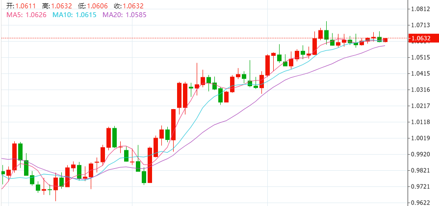 截至目前,欧元兑美元收报1.0632美元。欧元兑美元周三下跌0.25%,收报1.0611美元,在欧洲央行行长拉加德表示需要继续加息以来的几周内,欧元持稳于六个月高点附近。