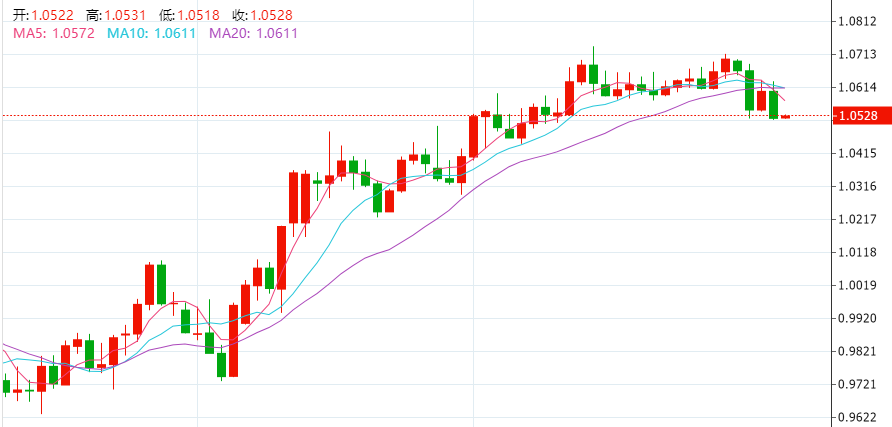 截至目前,欧元兑美元收报1.0528美元。欧元兑美元周四尾盘下跌0.79%,收报1.0519美元,此前欧元最低跌至1.0514美元,为12月12日以来最低。