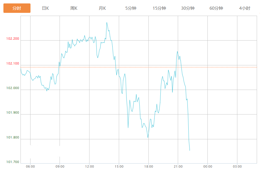 截至目前,美元指数下跌0.33%,报101.762。
