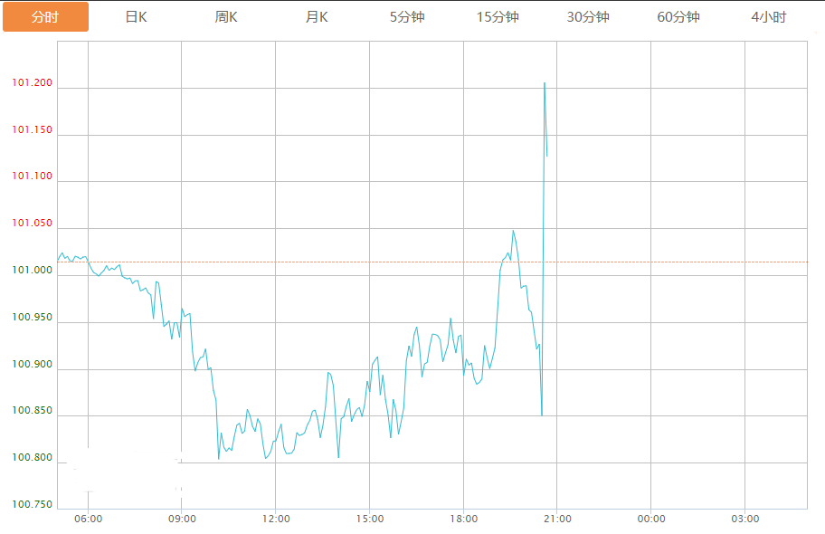 截至目前,美元指数上涨0.13%,报101.141。