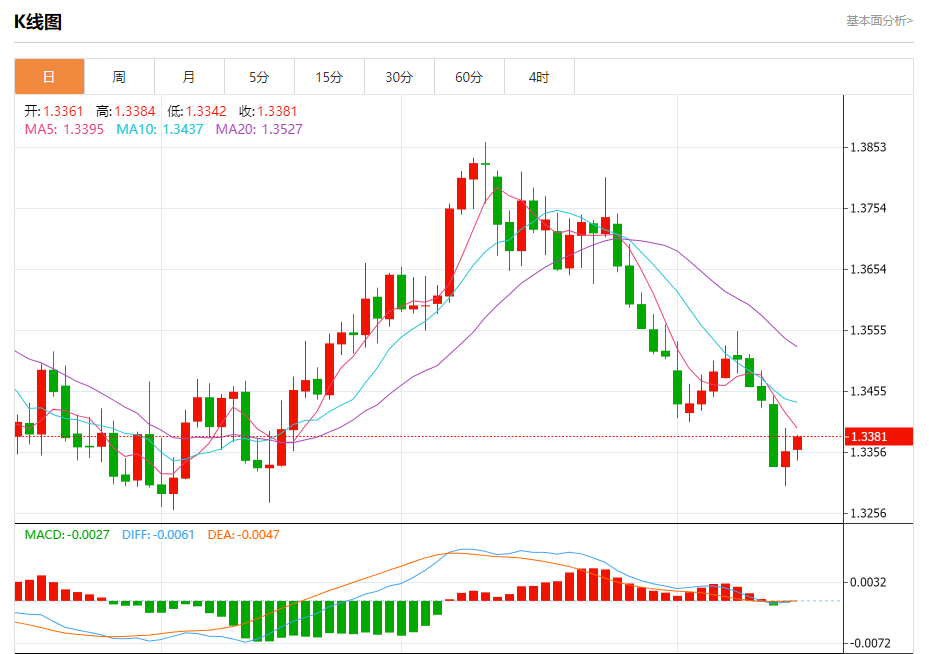 截至目前,美元/加元上涨0.18%,报1.3383。