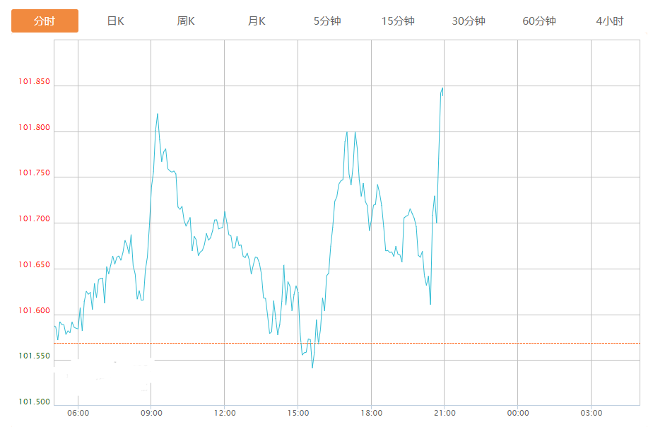 截至目前,美元指数上涨0.26%,报101.847。