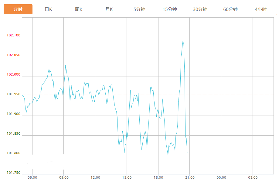 截至目前,美元指数下跌0.14%,报101.808。