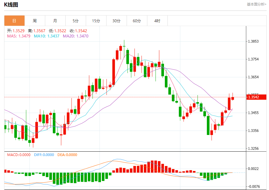 截至目前,美元/加元上涨0.09%,报1.3543。