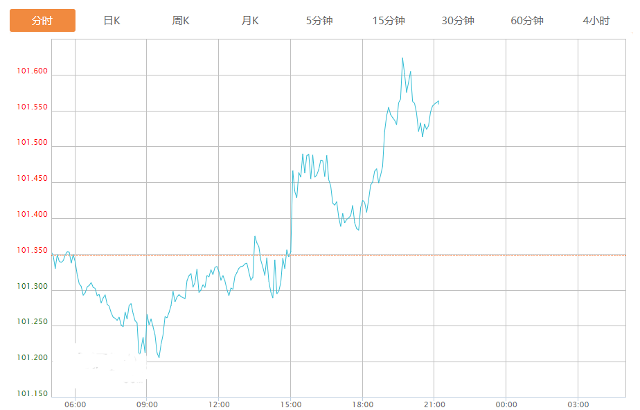 截至目前,美元指数上涨0.20%,报101.560。